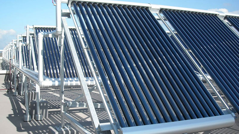 太陽の熱エネルギーを利用してお湯を沸かすシステムのことで、屋根などに設置した集熱器で太陽の熱を集め、その熱で水を温めて給湯や暖房、温水プールなどに利用されます。